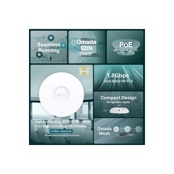 TP-LINK access point EAP620 HD, AX1800, WiFi 6, ceiling mount, Ver. 3.2