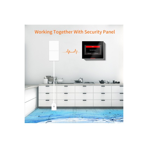 Ο ασύρματος ανιχνευτής πλημμύρας τοποθετείται κάτω από νεροχύτες, κοντά σε πλυντήρια και μπανιέρες κ.λπ. Ανιχνεύει αποτελεσματικά την διαρροή του νερού και στέλνει ειδοποίηση στο κεντρικό σύστημα συναγερμού.