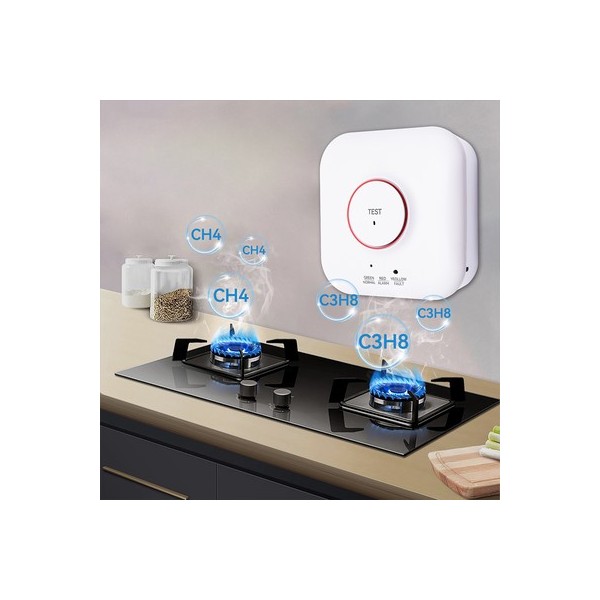 Ο ενσύρματος ανιχνευτής αερίου της HANWEI, ανιχνεύει την διαρροή αερίου και ειδοποιεί με ηχητικό και οπτικό συναγερμό.
