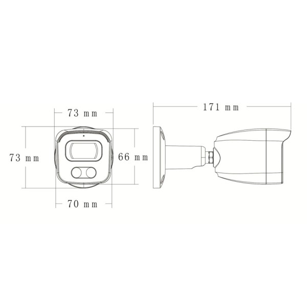 IP κάμερα, με fixed φακό 2.8mm, 1/2.9" CMOS sensor, ανάλυση 2MP και εύρος φωτός έως 25m. Διαθέτει ανθεκτικό μεταλλικό σώμα με αδιάβροχη προστασία IP67.