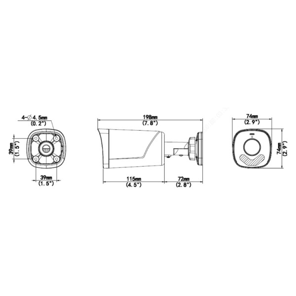 Dimensions (LxWxH): 198 x 74 x 74mm