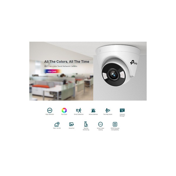 Δικτυακή κάμερα της TP-LINK με φακό 4mm και αισθητήρα ανάλυσης 4MP. Υποστηρίζει έγχρωμη νυχτερινή όραση, τροφοδοσία PoE, καταγραφή σε micro SD (δεν συμπεριλαμβάνεται) και εξοπλίζεται με εσωτερικό μικρόφωνο και ηχείο για αμφίδρομη μεταφορά ήχου.