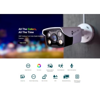 Δικτυακή κάμερα της TP-LINK με φακό 2.8mm και αισθητήρα ανάλυσης 3MP. Υποστηρίζει έγχρωμη νυχτερινή όραση, τροφοδοσία PoE και εξοπλίζεται με εσωτερικό μικρόφωνο για μεταφορά ήχου.