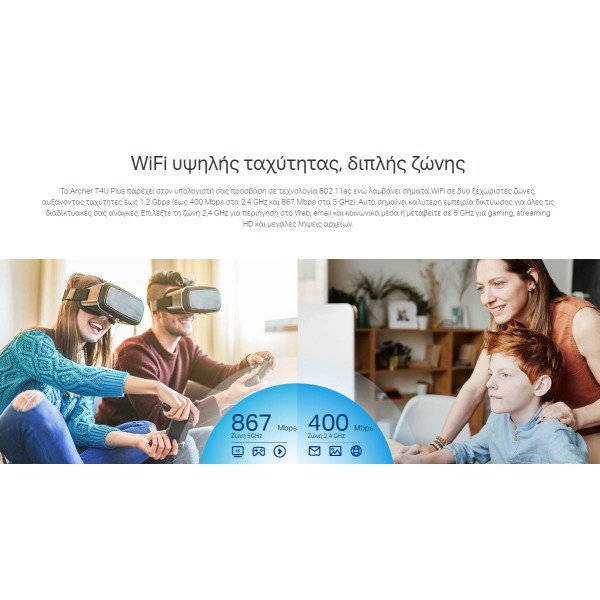 TP-LINK ασύρματος USB αντάπτορας δικτύου Archer T4U Plus, 1300Mbps, V.1
