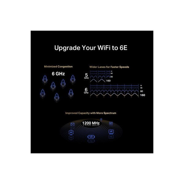 -Ασταμάτητη ταχύτητα σε 3 ζώνες: Ταχύτητες έως 2402Mbps στα 6GHz, 2402Mbps στα 5GHz, 574Mbps στα 2.4GHz