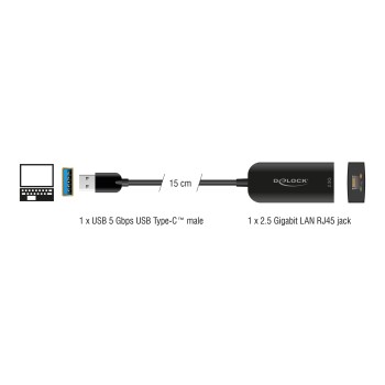 Αυτός ο αντάπτορας της Delock συνδέεται στον υπολογιστή ή το laptop σας μέσω θύρας USB, επεκτείνοντας τις θύρες του με 1 θύρα RJ45, η οποία επιτρέπει την ενσύρματη σύνδεση στο δίκτυο με ταχύτητες έως 2.5Gbps.