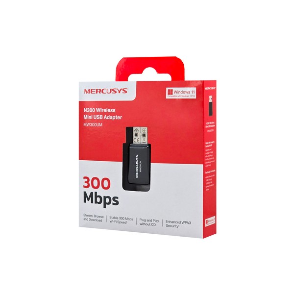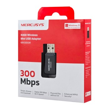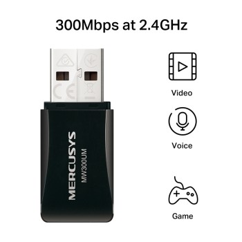 Ο ασύρματος USB αντάπτορας δικτύου MW300UM της MERCUSYS σας επιτρέπει να συνδέσετε ένα σταθερό ή φορητό υπολογιστή, σε ασύρματο δίκτυο WiFi, μέσω ελεύθερης θύρας USB.