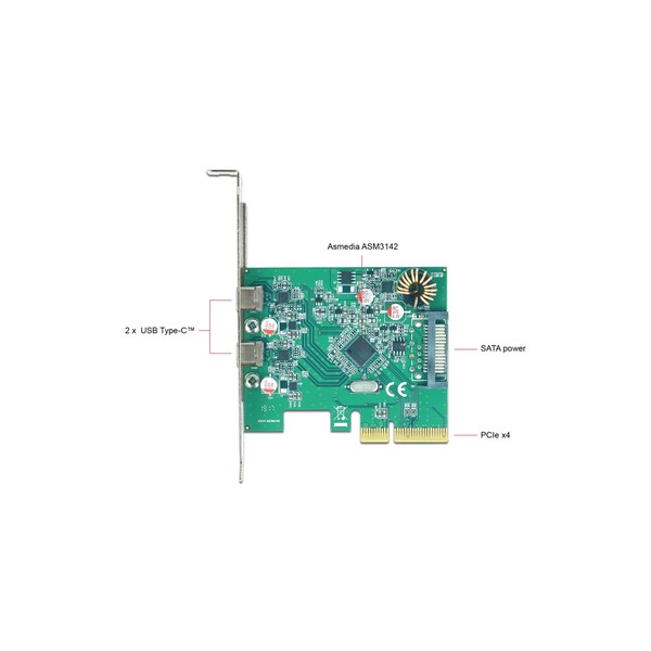 DELOCK κάρτα επέκτασης PCI Express x4 σε 2x USB-C 90397, 10 Gbps