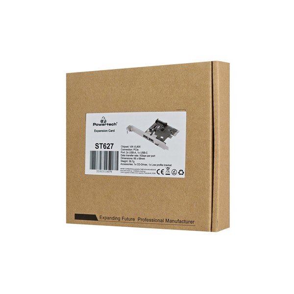 POWERTECH κάρτα επέκτασης PCIe σε 2x USB & 1x USB-C ST627, 5Gbps, 66x68mm