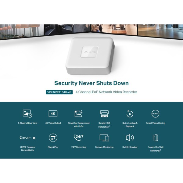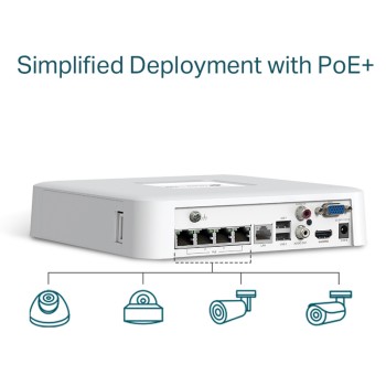 TP-LINK NVR καταγραφικό VIGI NVR1104H-4P, 8MP, 4 κανάλια PoE+, Ver. 1.0