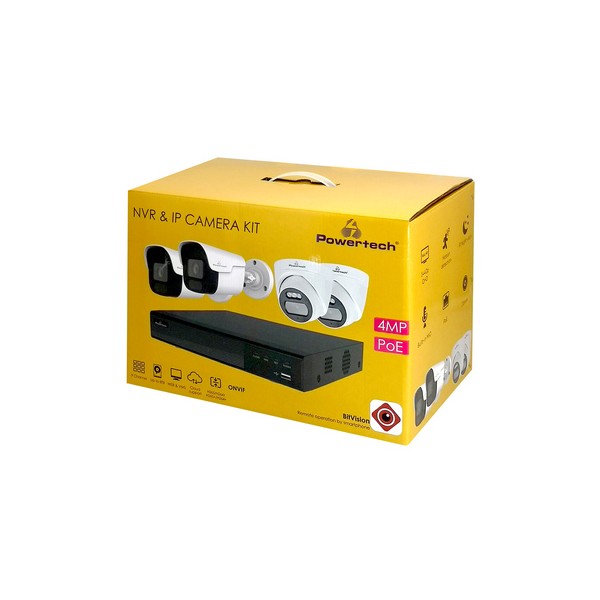 Σύστημα παρακολούθησης από την Powertech που αποτελείται από καταγραφικό και 4 IP κάμερες, για μια ολοκληρωμένη λύση παρακολούθησης του χώρου σας.