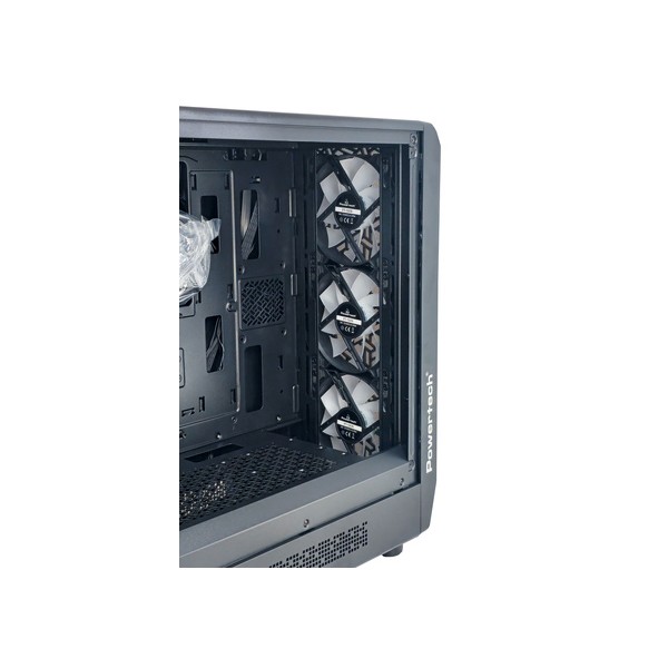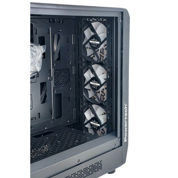 Gaming PC case της Powertech με διάφανο πλαϊνό μέρος, το οποίο, σε συνδυασμό με τους RGB ανεμιστήρες, προσφέρει εντυπωσιακό, οπτικό αποτέλεσμα!