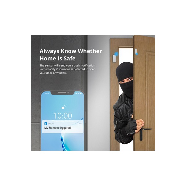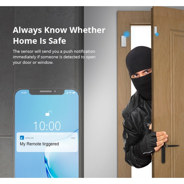 Ασύρματος μαγνητικός αισθητήρας παραθύρου και πόρτα της Sonoff. Αποτελείται από έναν πομπό και μια μαγνητική μπάρα, όταν αφαιρεθεί η μαγνητική μπάρα ο πομπός στέλνει ασύρματο σήμα συναγερμού. Υποστηρίζει push ειδοποίησης στο smartphone μέσω της εφαρμογής eWeLink. Τροφοδοτείται από 2 μπαταρίες AAA 1.5V(δεν συμπεριλαμβάνονται)