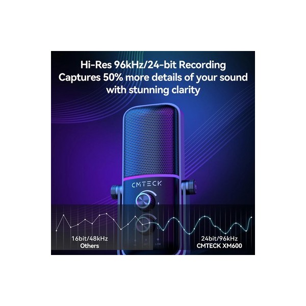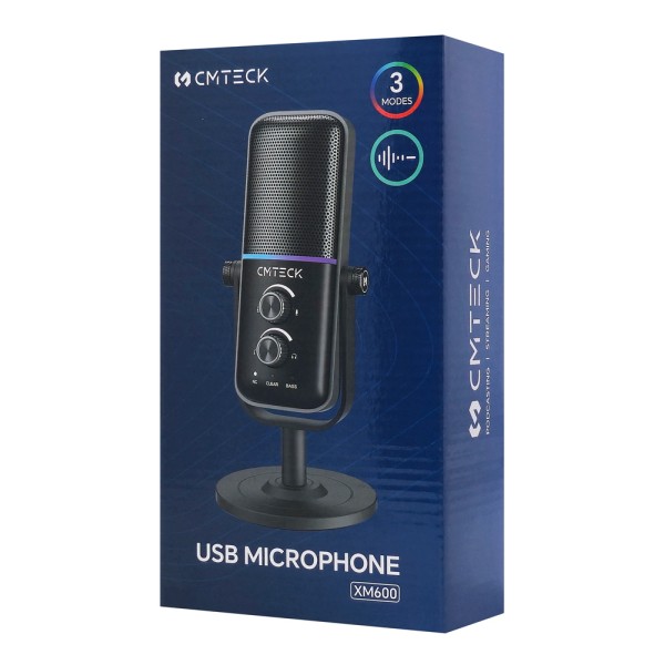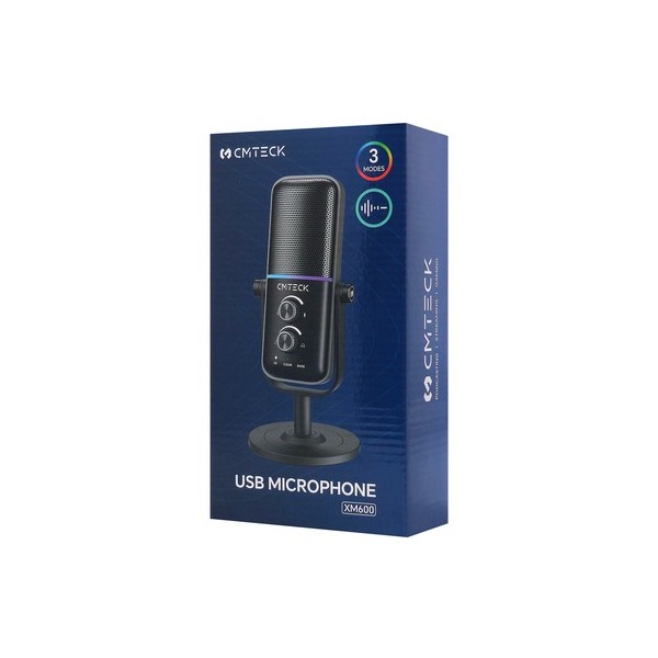 CMTECK επιτραπέζιο μικρόφωνο XM600, omnidirectional/καρδιοειδές, USB, RGB LED, μαύρο