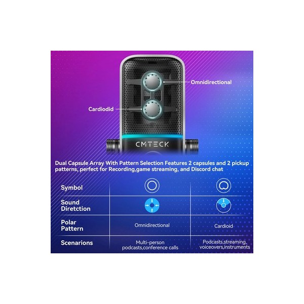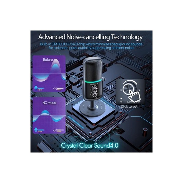 Το επιτραπέζιο μικρόφωνο της CMTECK προσφέρει καθαρή φωνητική καταγραφή με τεχνολογία μείωσης θορύβου, ιδανικό για gaming, τηλεδιασκέψεις, live streaming κ.α.
