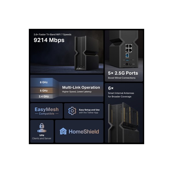 -Advanced Functions: Multi-Link Operation (MLO), 320 MHz Channel, 4K-QAM, Multi-RUs, EasyMesh-Compatible, Works with Alexa and Google Assistant, IoT Network