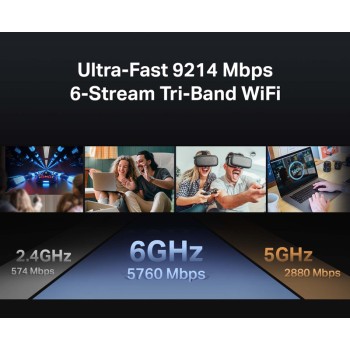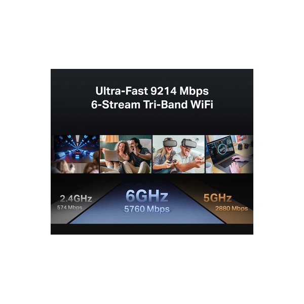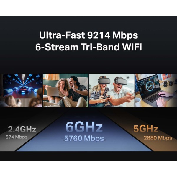 Παρέχει γρήγορες και σταθερές συνδέσεις WiFi με ταχύτητες έως 574 Mbps στα 2.4 GHz, 2880 Mbps στα 5 GHz και 5760 Mbps στα 6 GHz.