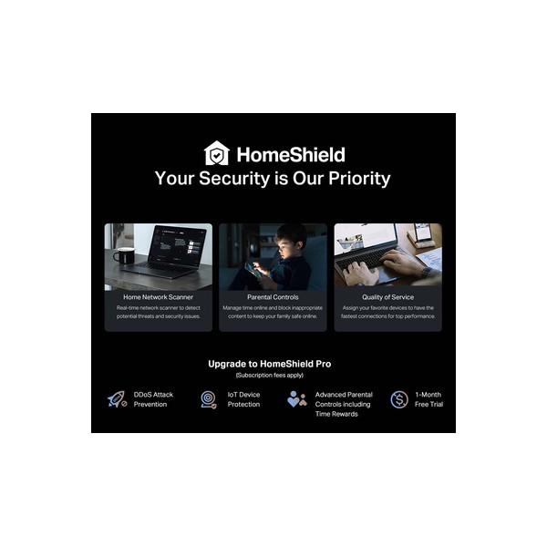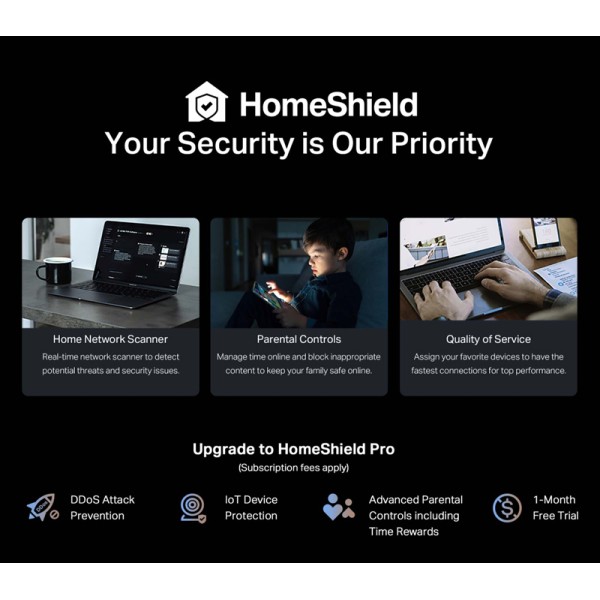 -Network Security: SPI Firewall, Access Control, IP & MAC Binding, Application Layer Gateway, HomeShield Security
