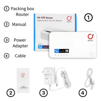 Το router G5010 από την Olax σας επιτρέπει να μοιράζεστε μέσω κάρτας SIM, ασύρματο δίκτυο κινητής τηλεφωνίας 4G και 5G σε έως και 64 συσκευές. Με γρήγορες ταχύτητες δικτύου Wi-Fi 6 σε διπλή ζώνη 2.4GHz και 5GHz, μπορείτε να περιηγηθείτε στο διαδίκτυο, να παρακολουθήσετε ταινίες ή να παίξετε παιχνίδια.