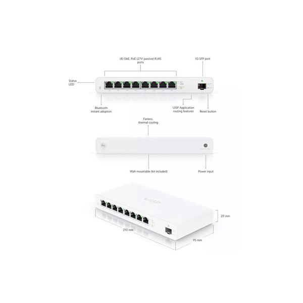 Το router UISP-R από την UBIQUITI είναι ένα μικρο αλλά ισχυρό router. Εξοπλίζεται με 8x RJ45 Gigabit θύρες που υποστηρίζουν τροφοδοσία PoE και 1x SFP θύρα.