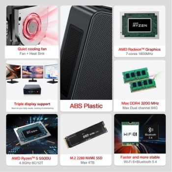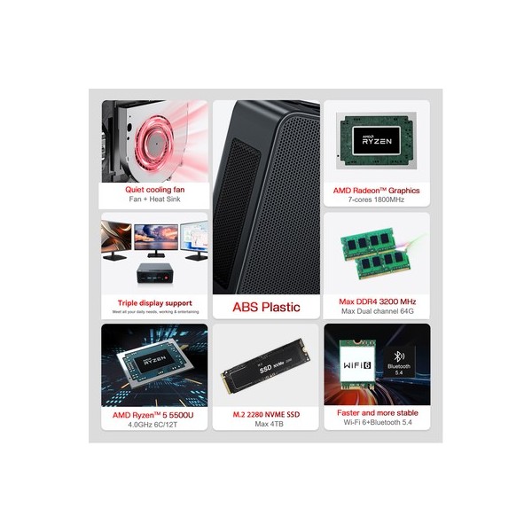 Με ισχυρό επεξεργαστή AMD Ryzen 5 5500U, μνήμη RAM 16GB, 500GB M.2 SSD και προεγκατεστημένο λειτουργικό Windows 11 Pro, το SER5 προσφέρει πολύ ομαλή εμπειρία λειτουργίας για να εργαστείτε, να δείτε ταινίες, να παίξετε παιχνίδια ή να περιηγηθείτε στο διαδίκτυο, από το σπίτι ή το γραφείο.