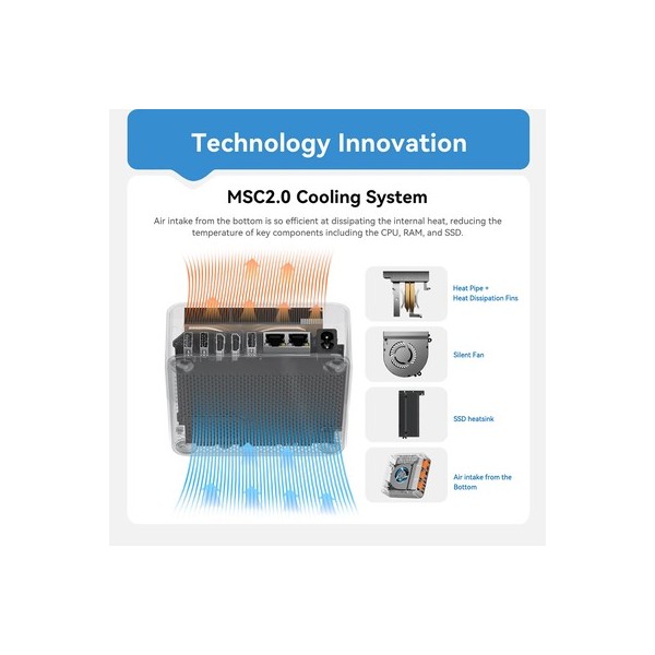 -Cooling: MSC 2.0 – Cooling System, Heat Pipe + Heat Dissipation Fins + Silent Fan + SSD Heatsink
