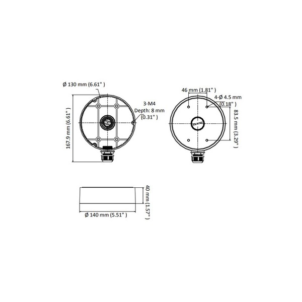 Βάση κάμερας με οπή για καλώδιο της HIKVISION, κατασκευασμένη από ανθεκτικό κράμα αλουμινίου.
