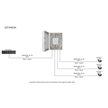 Το extender της Pulsar αυξάνει το εύρος σύνδεσης δυκτιου Ethernet και PoE για έως 100 μέτρα. Επιτρέπει τη σύνδεση 3x καμερών IP PoE χρησιμοποιώντας ένα καλώδιο.