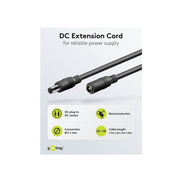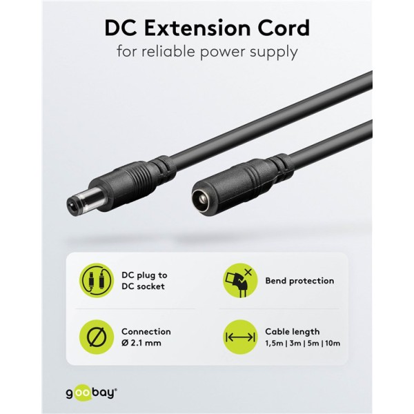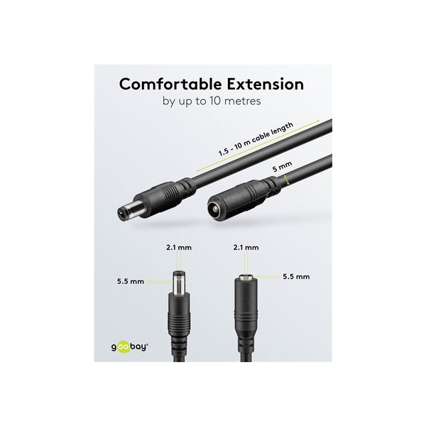 GOOBAY καλώδιο προέκτασης τροφοδοσίας 71399, 5.5x2.1mm, 3m, μαύρο