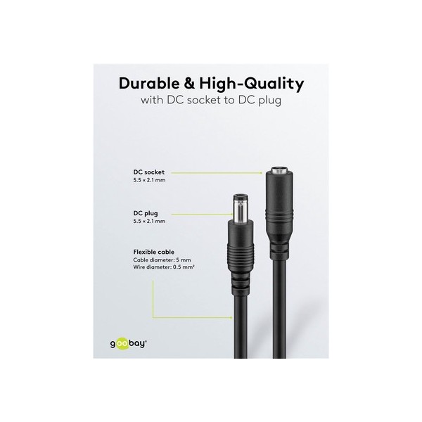 GOOBAY καλώδιο προέκτασης τροφοδοσίας 71400, 5.5x2.1mm, 10m, μαύρο