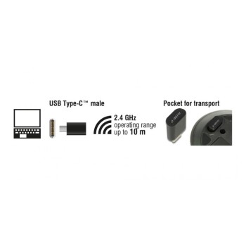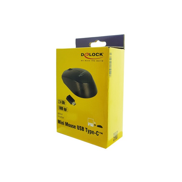 DELOCK ασύρματο ποντίκι 12526, Οπτικό, USB-C receiver, 3-button, μαύρο