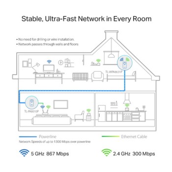 Transmission Speeds: Powerline: έως και 1300 Mbps, Ethernet: 10/100/1000 Mbps