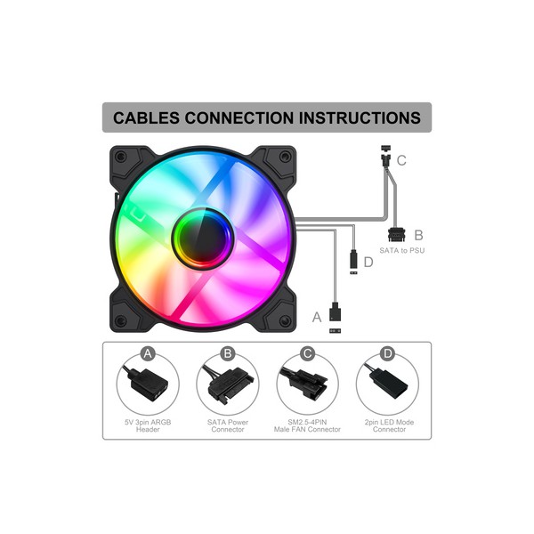 -Connectors: 5V 3pin ARGB header, SATA power connector, SM2.5-4PIN male fan connector, 2pin LED mode connector