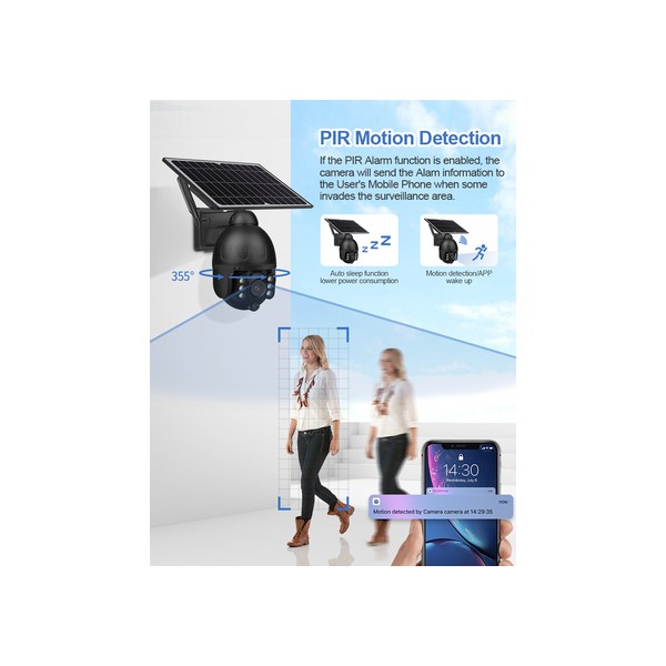 Ασύρματη ηλιακή IP κάμερα της Sectec εξωτερικού χώρου με διακριτική και μοντέρνα εμφάνιση. Διαθέτει αισθητήρα ανάλυσης 3MP και μπορεί να μεταφέρει εικόνα ανάλυσης HD. Η συσκευή διακρίνεται για την πολύ εύκολη και γρήγορη εγκατάσταση της καθώς και τον απροβλημάτιστο χειρισμό της από συσκευή smartphone απομακρυσμένα μέσω της εφαρμογής UBox. Η κάμερα διαθέτει αμφίδρομη μεταφορά φωνής και ήχου ενώ μπορεί επίσης να εντοπίζει ανθρώπινη σιλουέτα και κίνηση. Υποστηρίζει λειτουργία νυχτερινής όρασης για την παρακολούθηση ακόμη και στο σκοτάδι και τα βίντεο που καταγράφονται αποθηκεύονται εσωτερικά σε micro SD (δεν συμπεριλαμβάνεται) ή απευθείας σε λογαριασμό στο cloud. Τροφοδοτείται από 6 μπαταρίες 18650 (δεν συμπεριλαμβάνονται) οι οποίες επαναφορτίζονται με ηλιακή ενέργεια χάρη στο ηλιακό πάνελ.