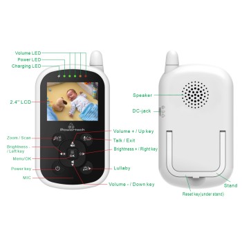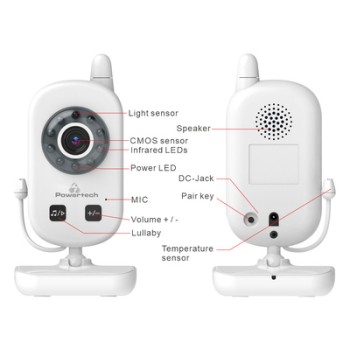 Ασύρματη ενδοεπικοινωνία μωρού της Powertech που αποτελείται από κάμερα και οθόνη 2.4".
