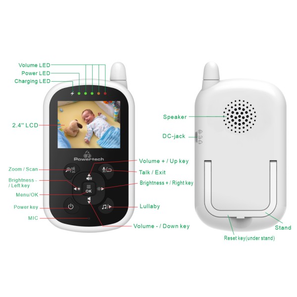 POWERTECH ενδοεπικοινωνία μωρού PT-1186, κάμερα & οθόνη 2.4", 480p