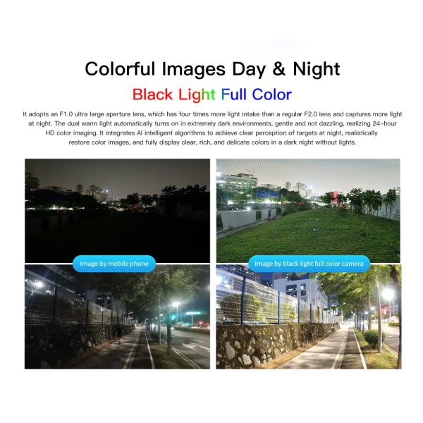 -IR control: No IRCUT, full color night vision, automatically adjusting the brightness of the lights according to the environment