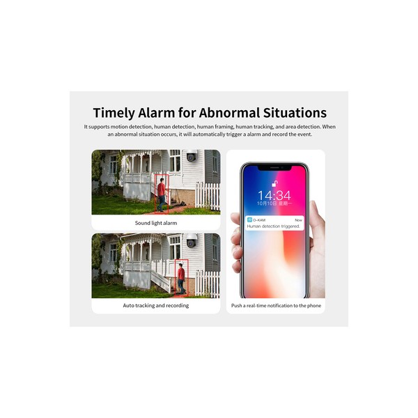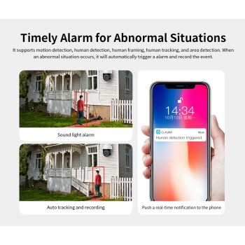 -Alarm detection: Motion detection, human detection, human framing, human tracking, siren sound, and area detection