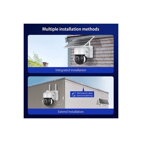 Ασύρματη ηλιακή κάμερα της Sectec εξωτερικού χώρου με διακριτική και μοντέρνα εμφάνιση. Διαθέτει αισθητήρα ανάλυσης 3MP και μπορεί να μεταφέρει εικόνα ανάλυσης 2304x1296p.