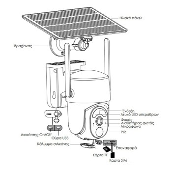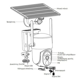 POWERTECH smart ηλιακή κάμερα PT-1176, 4MP, 4G, SD, PTZ, IP65