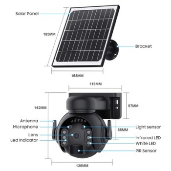 -Dimensions: Camera: 136 x 140 x 142mm, Panel: 168 x 183mm