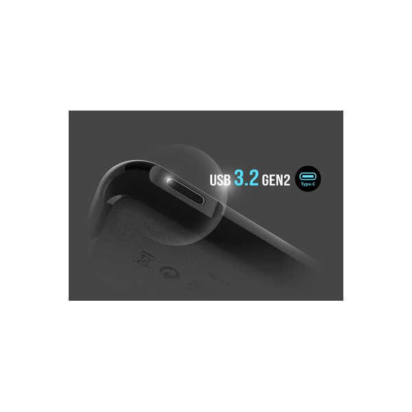 Χάρη στη διεπαφή USB 3.2 Gen 2, μπορεί να μεταφέρει δεδομένα με αστραπιαίες ταχύτητες, έως 10 Gbps, ενώ οι ταχύτητες ανάγνωσης και εγγραφής έως και 540 MB/s και 500 MB/s, αντίστοιχα, σας επιτρέπουν να ολοκληρώσετε τις εργασίες σας σε ελάχιστο χρόνο.