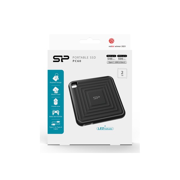 SILICON POWER εξωτερικός SSD PC60, 2TB, USB 3.2, 540-500MB/s, μαύρος