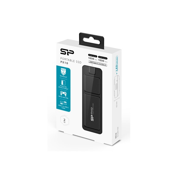 SILICON POWER εξωτερικός SSD PX10, 2TB, USB 3.2, 1050-1050MB/s, μαύρος