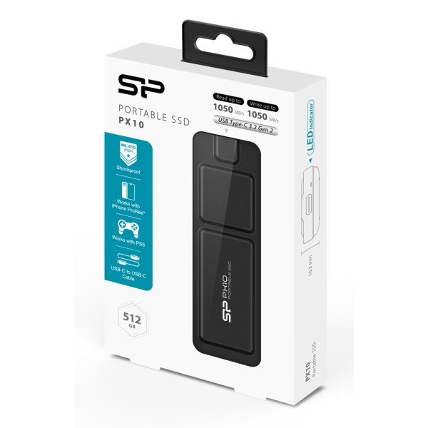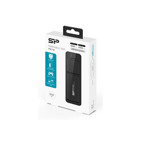 SILICON POWER εξωτερικός SSD PX10, 512GB, USB 3.2, 1050-1050MB/s, μαύρος