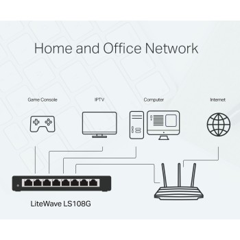 Τα TP-Link LiteWave Switch Unmanaged Series παρέχουν έναν εύκολο και οικονομικό τρόπο επέκτασης του ενσύρματου δικτύου σας. Είναι εύχρηστα και αξιόπιστα. Με αυτά τα plug-and-play Switches, μπορείτε να επεκτείνετε τις συνδέσεις δικτύου σας σε πολλές συσκευές αμέσως. Με όλες τις θύρες που υποστηρίζουν Auto-MDI / MDIX, δεν χρειάζεται να ανησυχείτε για τον τύπο του καλωδίου που θα χρησιμοποιήσετε.