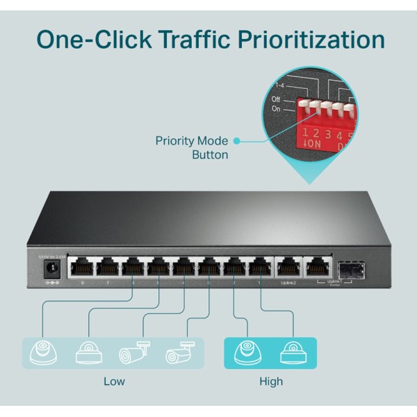 -Εξοπλισμένο με 8 PoE+ υποστηριζόμενες θύρες για μεταφορά δεδομένων και τροφοδοσία με ένα μόνο καλώδιο