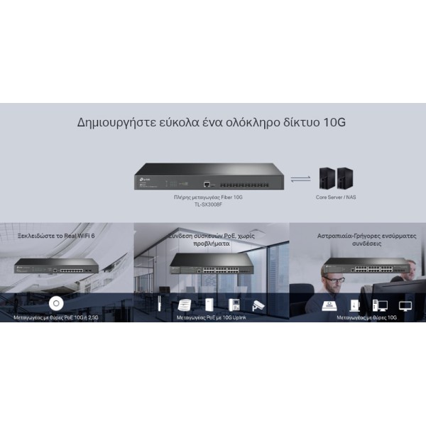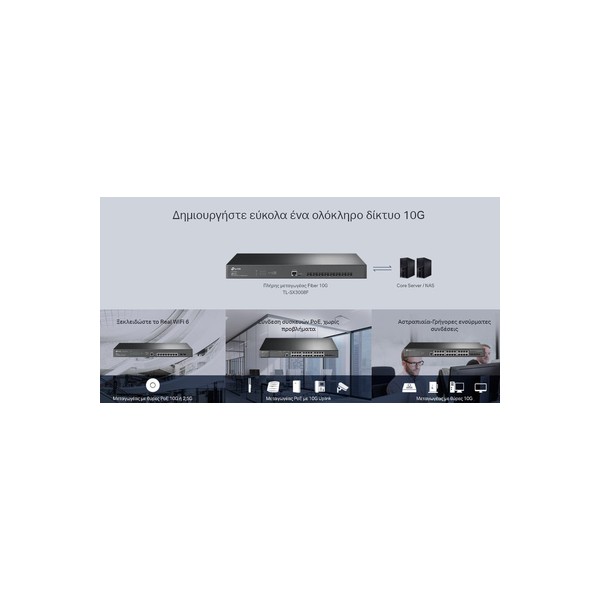 Το JetStream L2+ managed switch της TP-LINK είναι η ιδανική επιλογή για να επεκτείνετε τις θύρες δικτύου, σε μεγάλα επαγγελματικά δίκτυα, με 8x 10Gbps SFP+ θύρες.