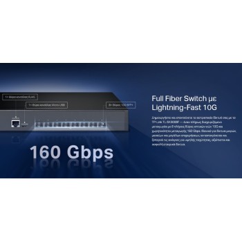 -Συνδέσεις Lightning-Fast 10G: Οι θύρες SFP+ 8x 10 Gbps επιτρέπουν συνδεσιμότητα υψηλού εύρους ζώνης και non-blocking χωρητικότητα μεταγωγής 160 Gbps