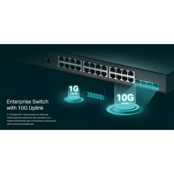 -10G Lightning-Fast Uplink: 4x υποδοχές SFP+ 10 Gbps επιτρέπουν συνδεσιμότητα υψηλού εύρους ζώνης και non-blocking χωρητικότητα μεταγωγής.